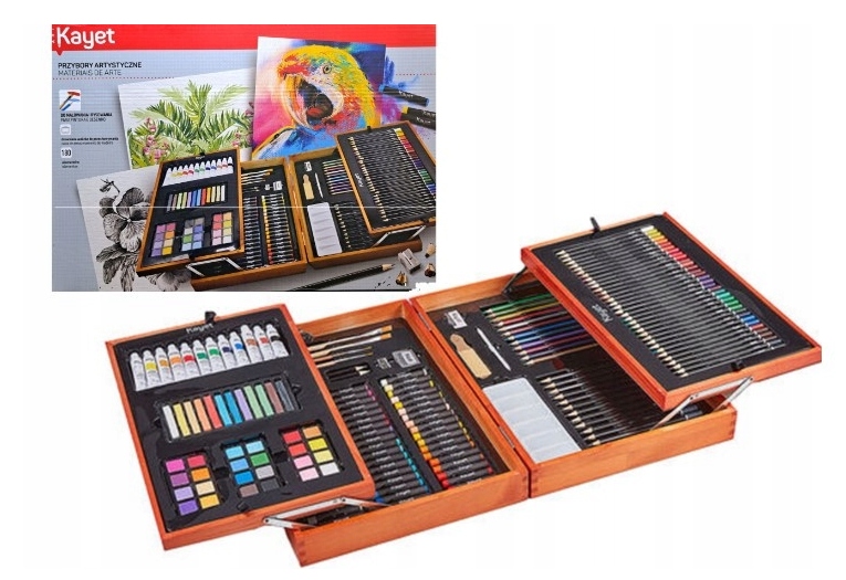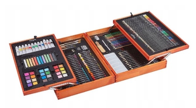 Подарунковий художній набір для малювання Kayet в дерев’яному кейсі (180 предметів)